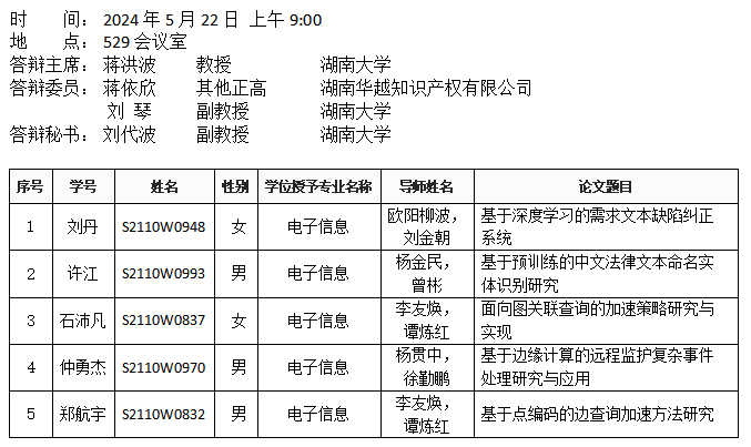 第一会所 (计算机工程系)2024年5月22日硕士答辩公告