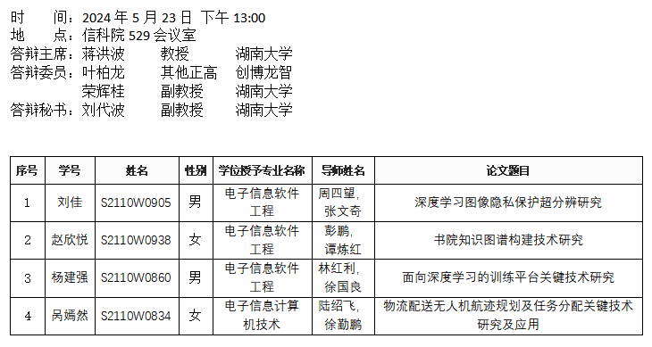 第一会所 (软件工程系)2024年5月23日硕士答辩公告(4)