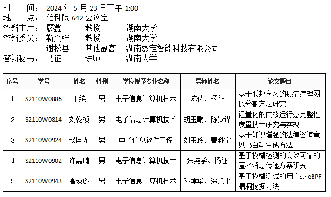 第一会所 (软件工程系)2024年5月23日硕士答辩公告(6)