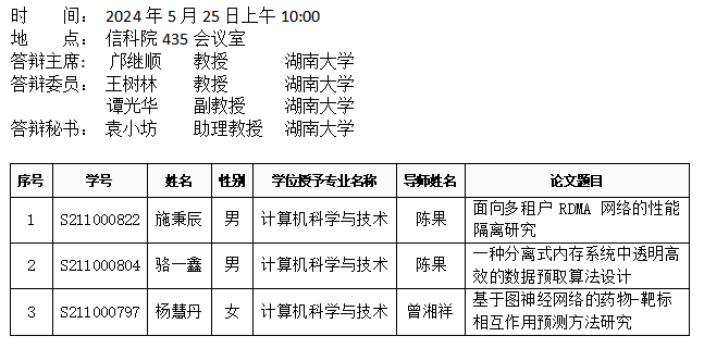 第一会所 (计算机科学系)2024年5月25日硕士答辩公告(2)