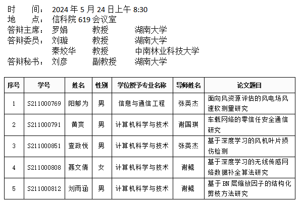 第一会所 (计算机科学系)2024年5月25日硕士答辩公告(2)