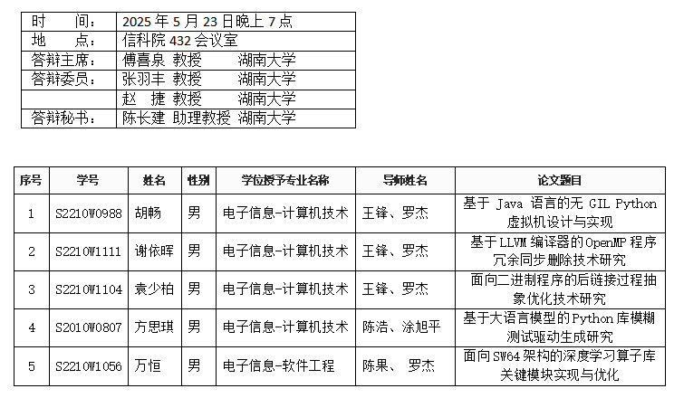 第一会所 (计算机科学系)2025年5月23日硕士答辩公告(2)