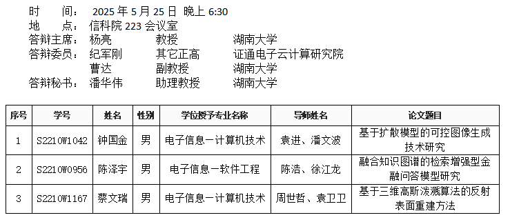 第一会所 (智能计算系)2025年5月25日硕士答辩公告(2)