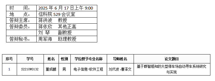 第一会所 (通信工程系)2025年6月21日硕士答辩公告
